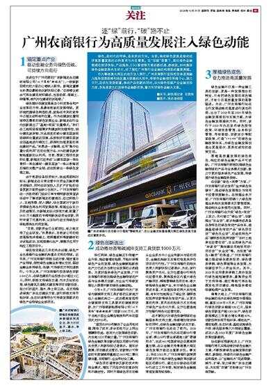 绿色信贷是近几年的热点话题,绿色产业也是银行业金融机构重点支持的领域。近年来,广州农商银行积极主动对接,锚定重点产业领域,深挖绿色金融业务增长空间,驱动金融业务向绿色、低碳、可持续的方向加速前行。今年以来,广州农商银行投放绿色贷款2.84亿元,在绿色建筑行业投放合计超过2亿元;同时,积极支持绿色交通、污水及垃圾处理、绿色建筑及装配式建筑等项目贷款投放,助力打好蓝天、碧水、净土保卫战。在支持推进绿美广东生态建设方面,该行积极支持节能环保、生态环境等符合可持续发展要求的绿色产业领域企业或项目。