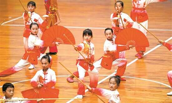 在校学生应该多参加各种健康有益的活动,远离危险游戏。图为学生在进行武术表演。新华社资料图。
