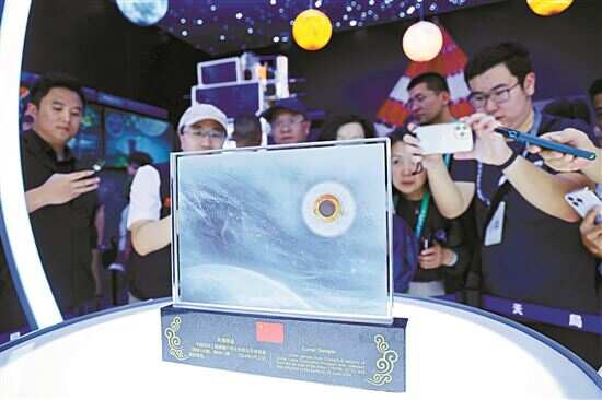 ■观众们参观月壤样品。