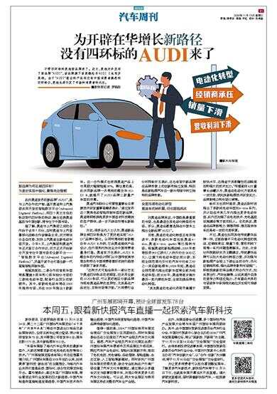 奥迪汽车股份公司管理董事会主席兼技术研发董事高德诺表示:“通过发布这个聚焦电动智能网联车型的新品牌,奥迪将积极拥抱更多中国追求科技潮流的客户群体,进一步开辟在华增长新路径。”