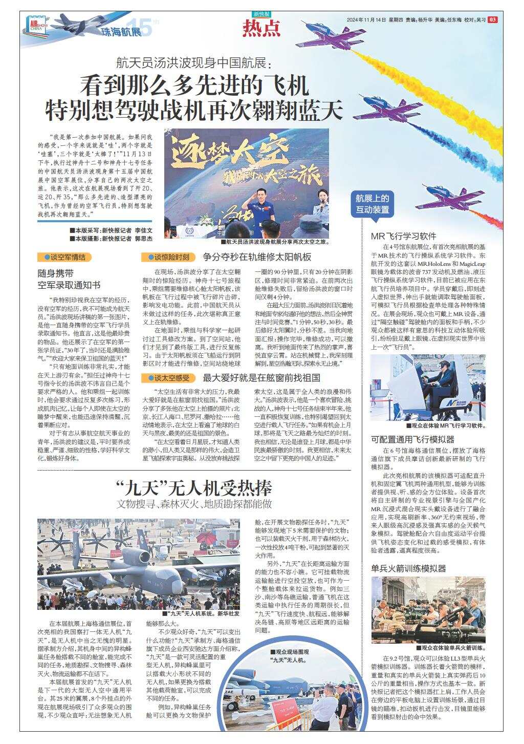 航天员汤洪波现身中国航展:看到那么多先进的飞机特别想驾驶战机再次翱翔蓝天