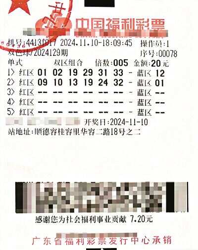 佛山市顺德区44131017福彩销售站点是一家经营时间长达20多年的老站,曾在2022年7月快乐8游戏5.2亿元派奖期间中出1000万“加料”大奖。此次再次中得双色球大派奖头奖,奖金高达4532万多元,成为今年佛山中出的最高奖金。站点负责人陈少荣激动地表示:“上次赶上快乐8大派奖,这次又拿下双色球大派奖,我深感自豪!希望更多的购彩者能够抓住机会,收获更高的奖金!”
