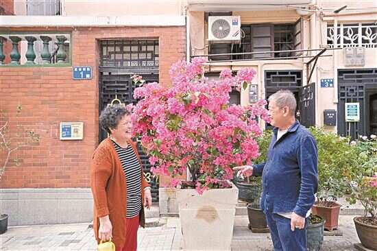 ■广州市越秀区六榕街旧南海县社区的居民梁伯夫妻,把这棵簕杜鹃打理得繁花怒放。 新快报记者 邓毅富/摄