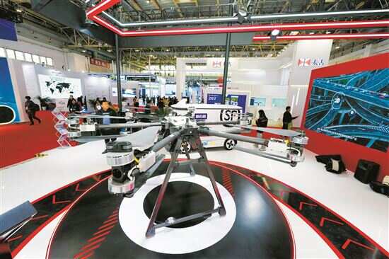 ■第二届中国国际供应链促进博览会顺丰速运展台展示的方舟F150运输无人机。 新华社发