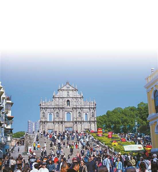 ■澳门各界庆祝澳门回归祖国二十五周年,图为人们在澳门大三巴牌坊游览。 新华社发
