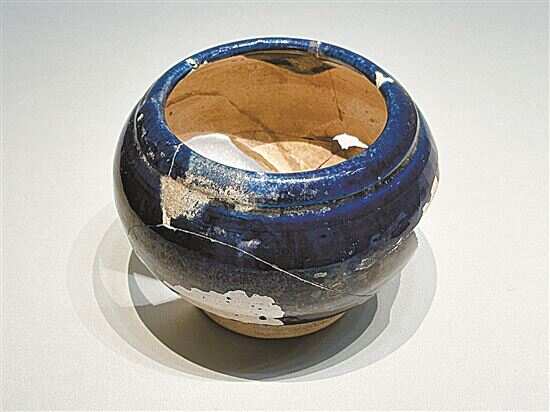 ■唐,蓝釉罐,2002-2004年河南巩义黄冶窑遗址出土。
