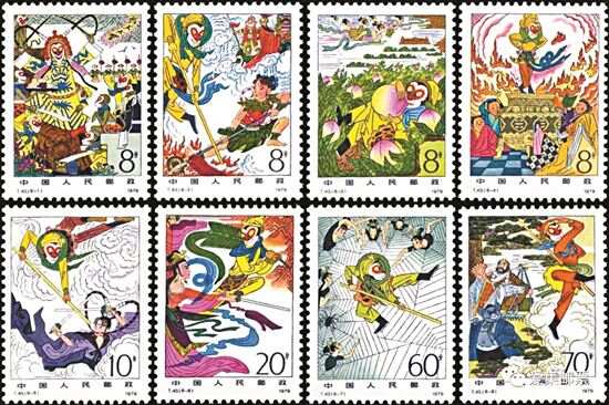 ■李大玮的这套邮票设计吸取了京剧和动画片的一些特点,运用中国民间年画的处理方法,使孙悟空的形象鲜明地活跃在方寸之间。
