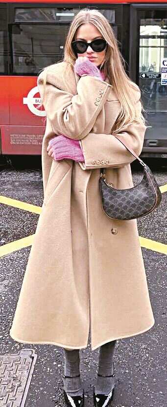 基础色系的风衣、大衣可搭粉色围巾或毛衣,令整体造型不显寡淡。