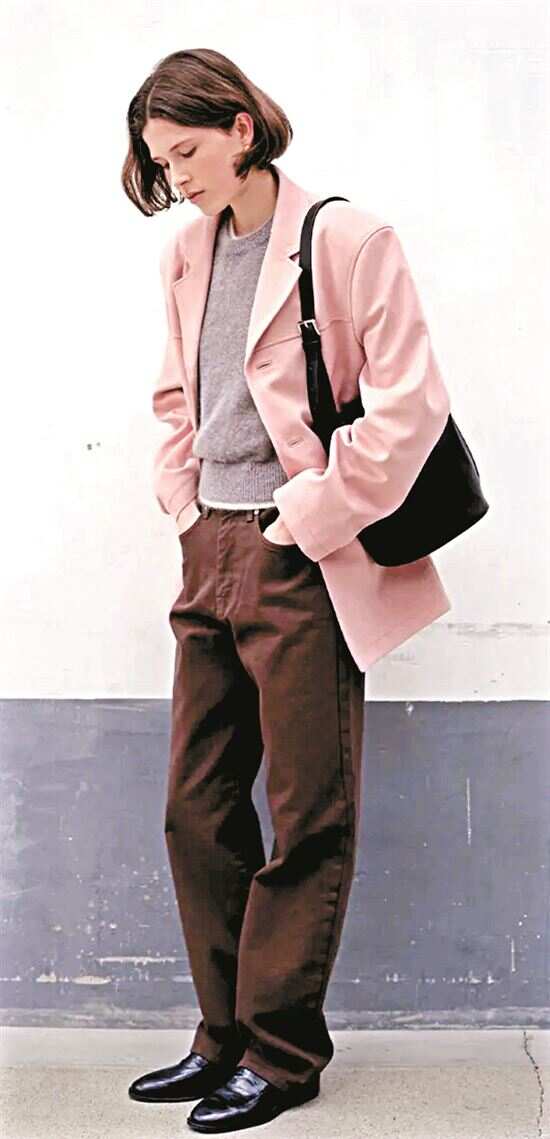 线条简洁大方的粉色单品与中性色单品搭配更容易体现高级感。