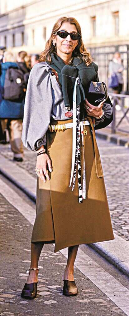 ▲彩色配饰如帽子、围巾、包包、鞋子等在中性色造型中的实用性和美观性如“画龙点睛”。