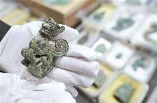 四川省文物考古研究院联合16家单位推进三星堆出土文物保护修复项目,完成祭祀区出土金面具、鸟形金饰等4062件珍贵文物的保护修复工作,同时对铜器铸造工艺和产地进行研究,发现了目前国内最早使用铜器芯撑技术的实例。