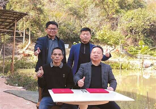 佛山市鹏辉农业科技有限公司与肇庆市怀集县永固镇多安村的蓝山生态山黄牛养殖场签订合作协议。