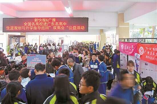 12月28日下午,“双高会”公益讲座交流活动热力延续,来到广州市真光中学与高三级学生、家长见面。有27所招生高校在体育馆内设置咨询展位,中山大学、华南理工大学、兰州大学、北京师范大学等全国知名高校到校参与。