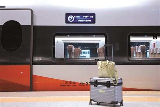 ■白云站站台上,C1893次列车整装待发。 新快报记者 郭思杰/摄