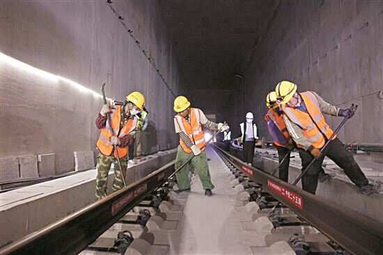 ■最后一组长轨铺设作业现场。 邓联旭/摄