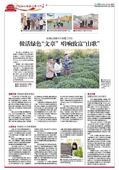 随着新一轮乡村振兴驻镇帮镇扶村工作启动,如何跑好这场“接力赛”?广州市增城区驻清远市英德市大洞镇帮镇扶村工作队(下称“工作队”)与地方党委政府凝心聚力,立足生态优势,做活绿色文章,坚持在发展中不断改善民生,共同绘就农业兴、农民富、农村美的新画卷。