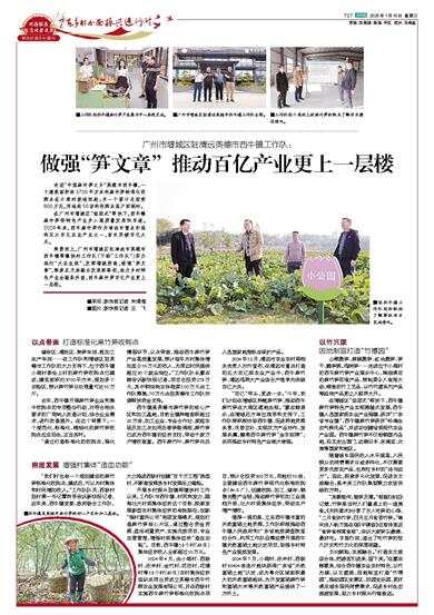 乘势而上,广州市增城区驻清远市英德市西牛镇帮镇扶村工作队(下称“工作队”)努力践行“大农业观”,发挥增城所能,做强“笋文章”,探索农文旅融合发展新路径,助力乡村特色产业全链条升级,西牛麻竹笋百亿产业更上一层楼。