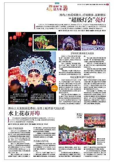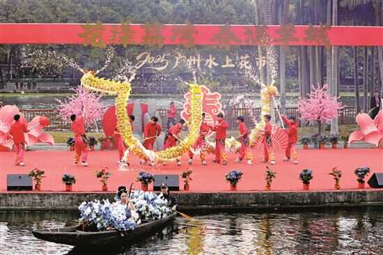 当天上午10点,荔湾湖的水上舞台,独具岭南传统文化特色的雄狮献瑞之后,对联“金蛇送福春满羊城迎新岁 新春携瑞花漾荔湾添意趣”缓缓升空,2025广州水上花市就此拉开序幕。同时,2025广州花卉博览园与岭南花卉市场花市也正式开市。