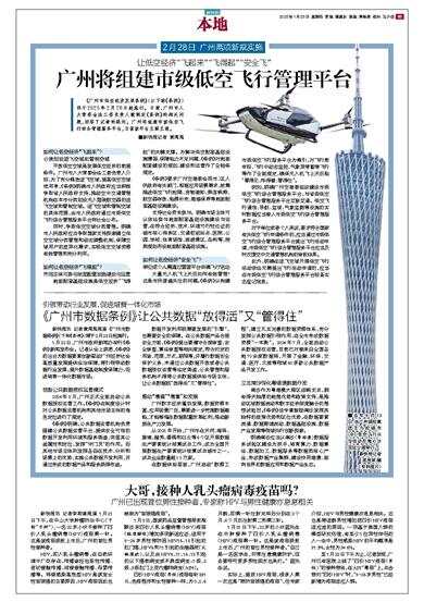 《广州市低空经济发展条例》(以下称《条例》)将于2025年2月28日起施行。日前,广州市人大常委会法工委负责人就制定《条例》的相关问题,回答了记者的提问。广州将组建市级低空飞行综合管理服务平台,与省级平台互联互通。