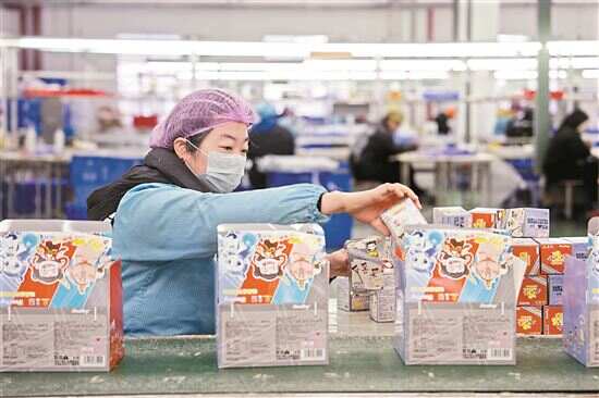 ■2月8日,在湖南湘潭综合保税区的一家工厂里,工人在包装“哪吒”系列周边玩具。新华社发