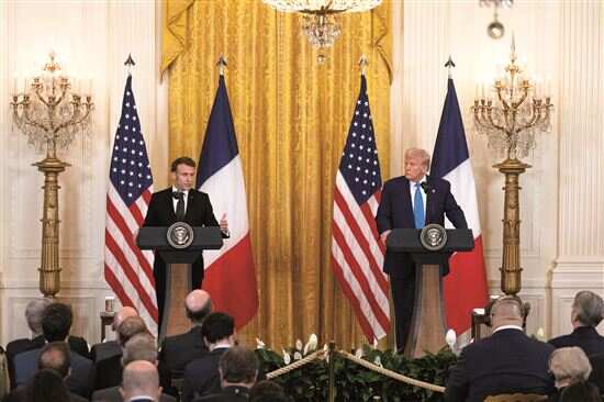 ■2月24日,美国总统特朗普(右)在华盛顿白宫与到访的法国总统马克龙举行会谈后的联合记者会。新华社发