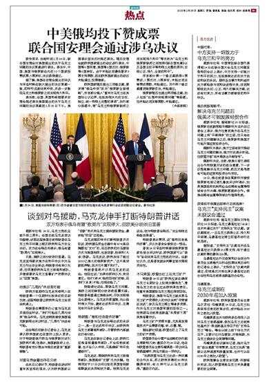 特朗普在椭圆形办公室与马克龙并肩而坐时说,“我们可能在几周内结束”俄乌冲突。马克龙稍晚接受美国福克斯新闻台采访时说,“几周内”休战有可能。