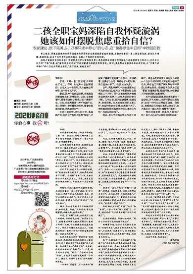育儿焦虑、再就业困难和自我价值感缺失等是很多全职妈妈所面临的困境,本期来信者是一名二孩全职宝妈,曾自认为清醒、通透的她,在当了五年多的全职妈妈后,也陷入了焦虑和自我怀疑。