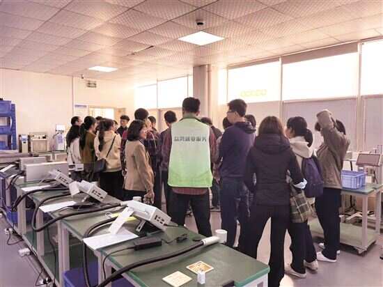 ■荔湾区“绿马甲”带求职者参观企业车间。