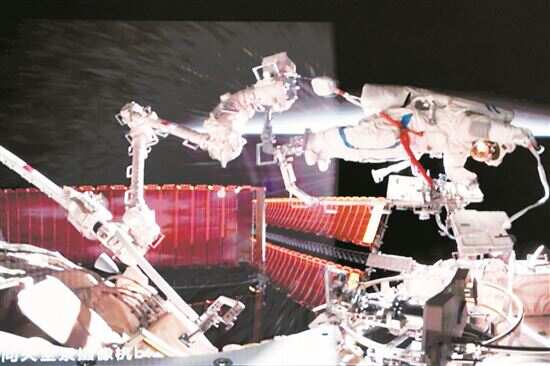 ■1月20日在北京航天飞行控制中心拍摄的神舟十九号航天员宋令东在空间站组合体舱外工作的画面。(资料图)新华社发
