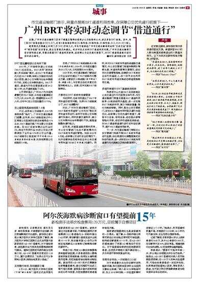 2010年,广州首条快速公交系统(BRT)应运而生。BRT采用“封闭走廊+灵活线路”模式,在BRT专用通道内只走BRT车辆,体现公交路权优先的设计思想,减少公交车辆与社会车辆混行干扰,实现公交车辆快速化。BRT开通后,通道内平均运营速度达到24公里/小时,比开通前提高了84%。