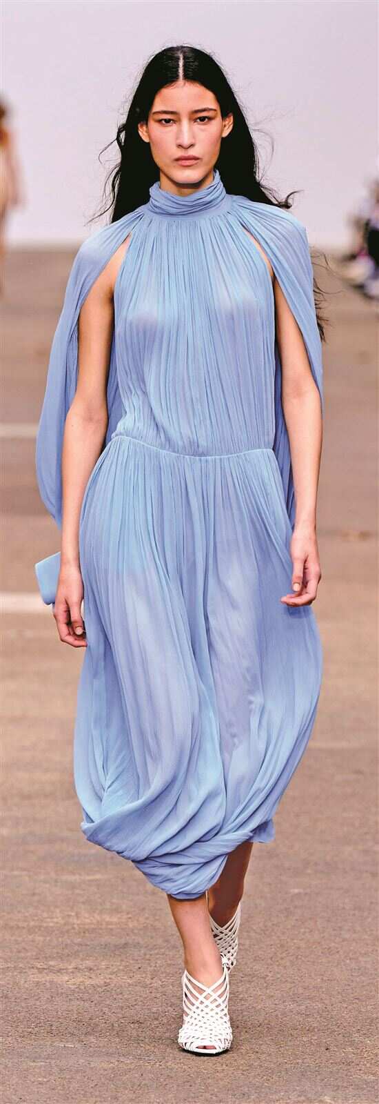 薄纱与不同形态的褶皱结合,尤其让轻盈面料有了立体透视的肌理感,这一趋势在裙装设计领域体现得更加淋漓尽致,不着痕迹却恰到好处凸显含蓄迷人的性感韵味,这种精妙设计于无形中牢牢吸引众人目光。