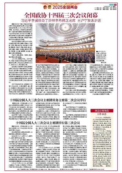 据新华社电 十四届全国人大三次会议主席团10日下午在北京人民大会堂举行第三次会议。