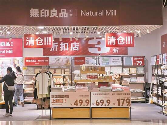 不过与MUJI无印良品一般开在大型购物中心的数百平方米大店不同,该店面积只有约30平方米,而且挂满了“清仓”“折扣店”“低于3折”等标语、海报。店员向记者介绍称该店是“无印良品的官方折扣店”,记者进一步询问“是不是日本的MUJI”,店员则回称“那不是的”。