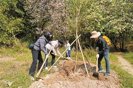 ■3月23日,近百位新快报读者及亲友应邀在广州白云山参加“我为花城添绿”植树活动。新快报记者 郭思杰/摄