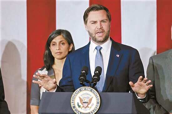 ■3月14日,美国副总统万斯和妻子乌莎·万斯在美国密歇根州一场活动上。新华社发