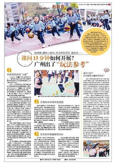 春季学期开学后,“课间15分钟”成为广州中小学家长广泛关注的热词。广州全市小学课间活动时间统一延长至15分钟,初中下午课间10分钟调整为15分钟。具体应该如何实施?在记者此前的走访中,不少学校表示仍在积极探索阶段。3月21日,广州市教育局官网发布关于印发《广州市微课间体育活动的实施建议与指引》(以下简称《指引》)的通知,对学校课间管理给出了具体的“玩法参考”。