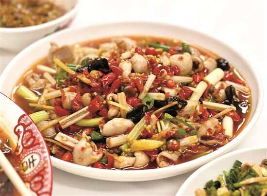 椒与姜,是盐帮菜的精髓,这个“椒”除了辣椒,还有花椒;姜则指仔姜,没有生姜那么辛辣,每年3、4月份的仔姜是又嫩又鲜,微微带甜,口感脆,用来做鲜锅兔、仔姜烧蛙等菜品简直不要太好吃,越嚼越香的那种……
