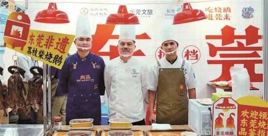 ■谢岗镇市级非物质文化遗产代表性项目“荔枝柴烧鹅制作技艺”亮相“百万英才汇南粤”春季大型综合招聘会。