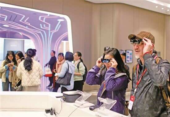 ▲广州视源股份有限公司展厅,参观者体验智能交互产品。