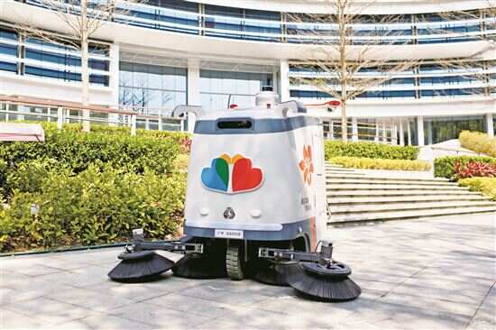 广州科学城,“智赛洁”无人驾驶清扫车正在工作。目前,在广州陈家祠广场、中山纪念堂、二沙岛等城市地标以及多条城区主干道都能看到“智赛洁”的身影。