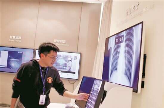广州视源股份有限公司展厅,工作人员介绍医用智能产品。视源股份是一家以液晶显示主控板卡、交互智能平板等显控产品为核心的高科技企业,通过各类智能化终端产品,服务于千行百业的数字化转型。