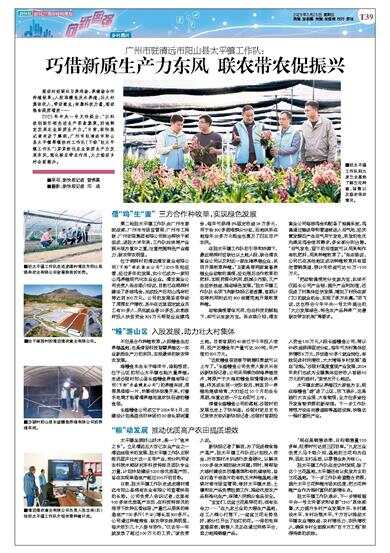 2025年中央一号文件提出:“以科技创新引领先进生产要素集聚,因地制宜发展农业新质生产力。”日前,新快报记者走访了解到,广州市驻清远市阳山县太平镇帮镇扶村工作队(下称“驻太平镇工作队”)紧紧抓住农业新质生产力发展东风,强化联农带农作用,大力推动乡村全面振兴。