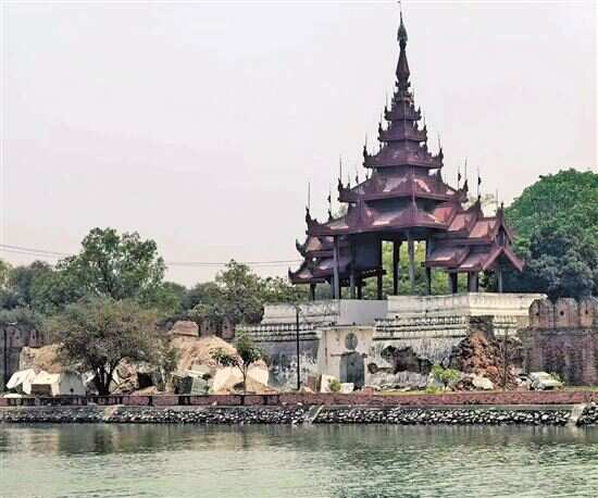 ■这是3月28日在缅甸曼德勒省拍摄的地震后受损的曼德勒皇宫围墙。