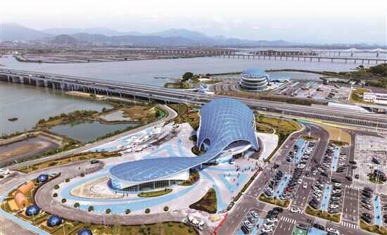 ■清明节假期将至,4月2日,深汕西高速改扩建工程汕尾长沙湾服务区全面投入使用,特别的“蓝鲸天幕”外观为旅客打造新的旅游消费空间。新华社发
