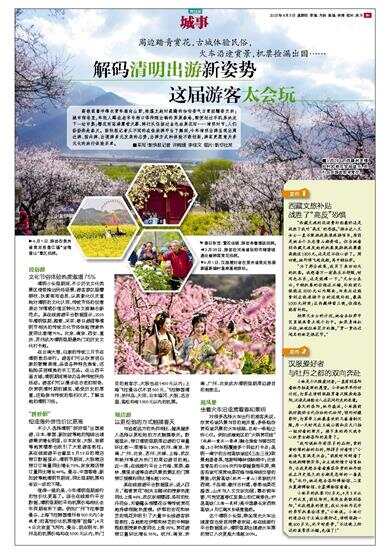 高铁载着冲锋衣青年涌向山野,帐篷支起时蒸腾的咖啡香气与青团糯香交织;城市街巷里,年轻人蹲在老字号档口等待刚出锅的荠菜春卷,顺便划过手机屏决定下一站市集;樱花雨落满露营天幕、骑行队伍掠过金色油菜花田……清明时节,人们纷纷奔赴春天。新快报记者从不同的在线旅游平台了解到,今年清明出游呈现出周边游、国内游、出境游多元发展的态势,出游方式和体验不断创新,游客更愿意为多元化的旅行体验买单。