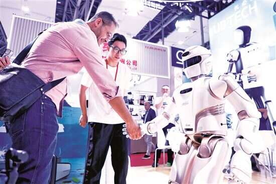 ■广交会上,深圳某企业的人形机器人与国外采购商握手。广交会是中国企业出口的一个重要平台。