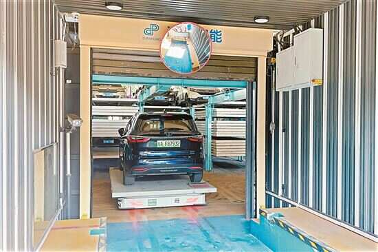 ■环城高速奥体段利用有限的桥下空间建设了广州首个AGV立体停车库。