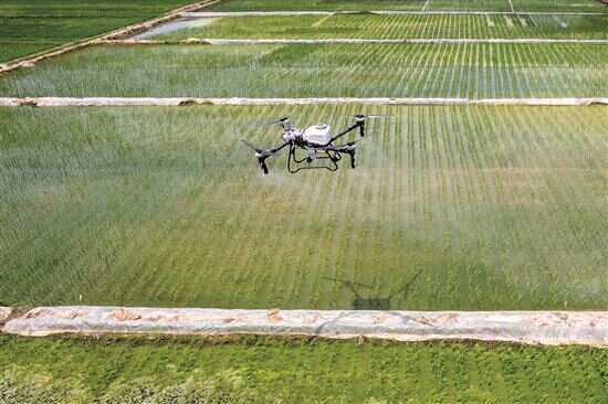 一切就绪,无人机在旋翼轰鸣声中缓缓升空。药液呈雾状从机身两侧均匀洒出,如细雨飘落农作物上。“作业前要查天气,风大或下雨都不宜。”周先成边说边调整雾化程度。6分钟后,50升药水喷洒完,无人机一键返程,再次加药液起飞。