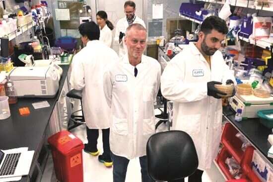 ■蒂姆·弗里德(中间)在加州旧金山南部的一个实验室里。