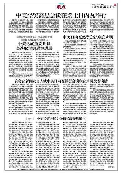 中美双方一致同意建立经贸磋商机制,就双方在经贸领域的各自关切保持沟通。
